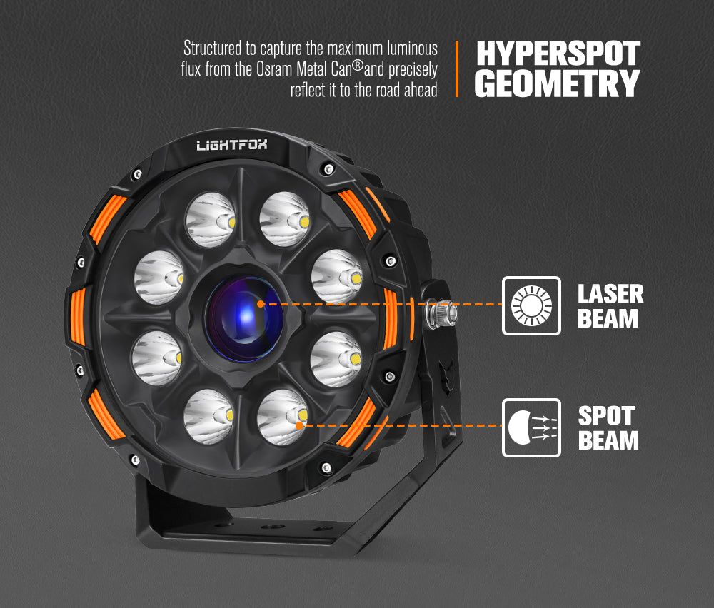 Lightfox laser driving lights provide an impressive output with hyperspot and