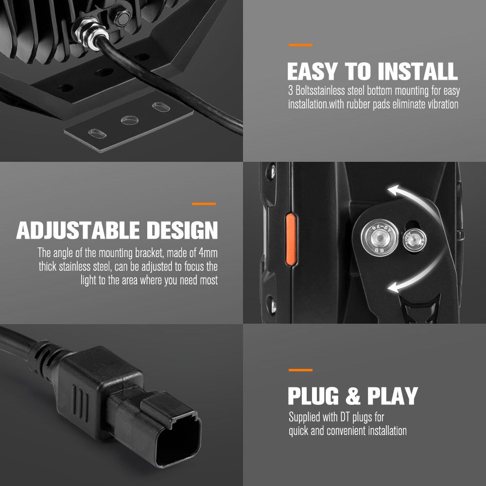 Upgraded Harness: This 9" LED driving lights are supplied with waterproof DT