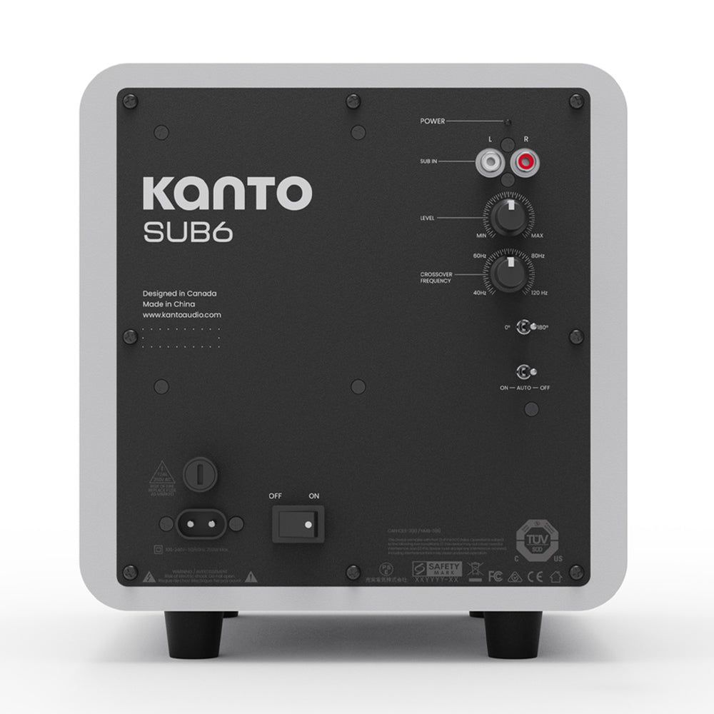 Limited Edition - Kanto SUB6 200W 6" Sealed Powered Subwoofer, Matte White, With White Grill - Bring depth and definition to your sound system with the Kanto SUB6, a compact yet powerful sealed subwoofer engineered for precision and performance. Featuring an 6-inch woofer powered by a robust 200W Class D amplifier, the SUB6 responds swiftly to transients, delivering tight, distortion-free bass that enhances everything from music to movie soundtracks.