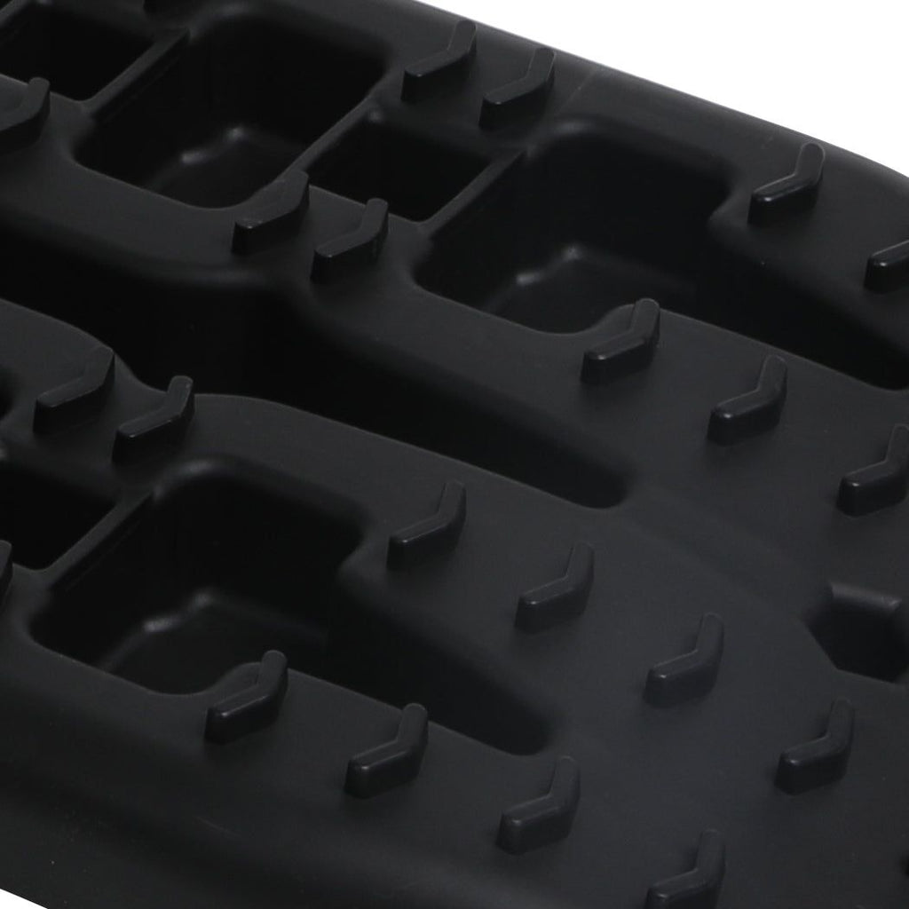 Made from high grade reinforced Nylon for extreme toughness and durability. Designed to provide high resistance towards high and low temperatures no matter the weather it can perform its best. Its Heavy-duty construction is suitable for regular or high-powered four-wheel drives. With its 28cm width it can fit perfectly with most cars wheel. Built with rounded corners to prevent any damages to your tyre safe to use great to infuse. Ergonomic curved design compatible with many models of tyres provides better grip and grasp. Featuring intelligently structured 7mm high teeth to prevent your tyre from skidding or sliding. Very easy to insert under the wheel with its innovative multifunctional slope simply slew it in. For added convenience we have devised our product with wide diversion grooves to disperse water and mud for a better clutch. Highly convenient to adjust with its thin and thick rung evenly distributes weight and pressure. Ample sized smooth handles enable simple to grab usage.