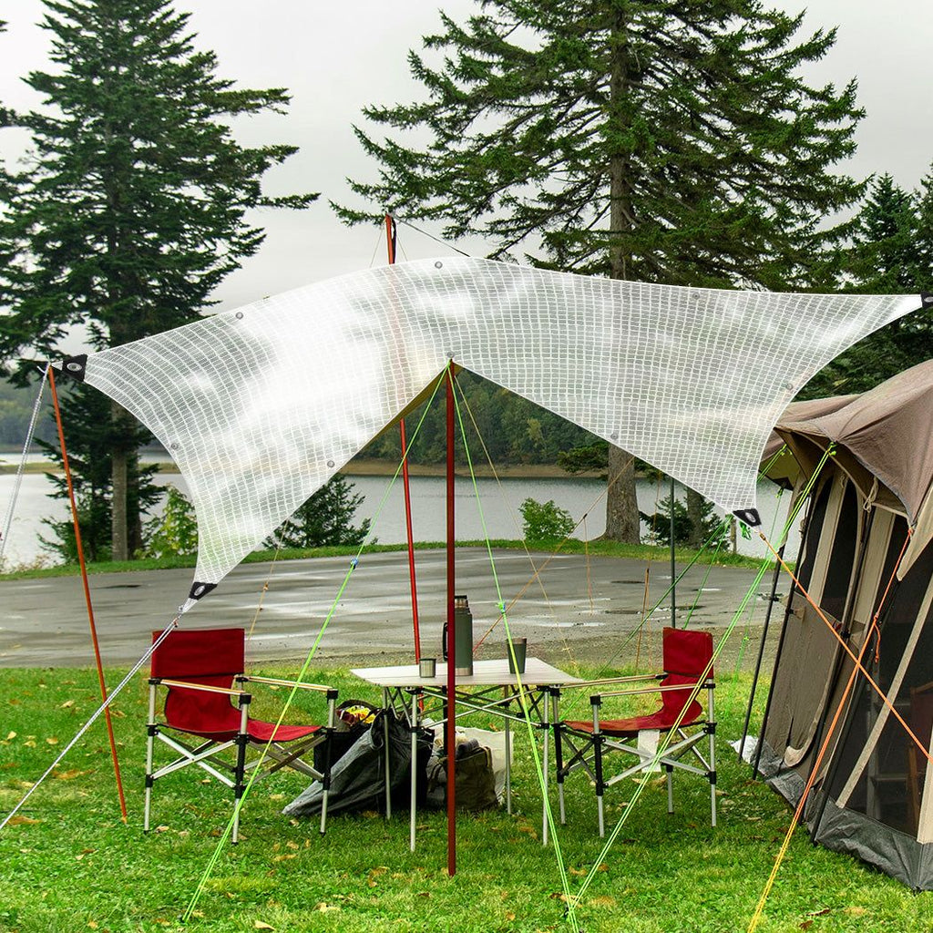 Enjoy your time camping. Use your clear tarp over your tent to stop wind and rain. But always let the sunshine through. Put your other tarp on the ground to protect from surface moisture.