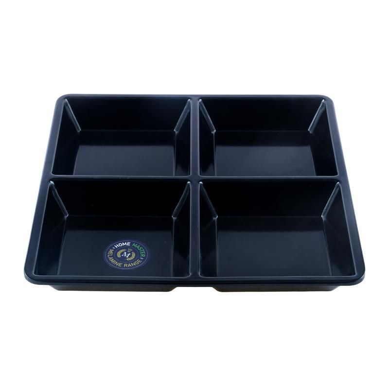 Melamine Platter Tray with 4 Section Divider Square 21cm x 2.5cm - Black