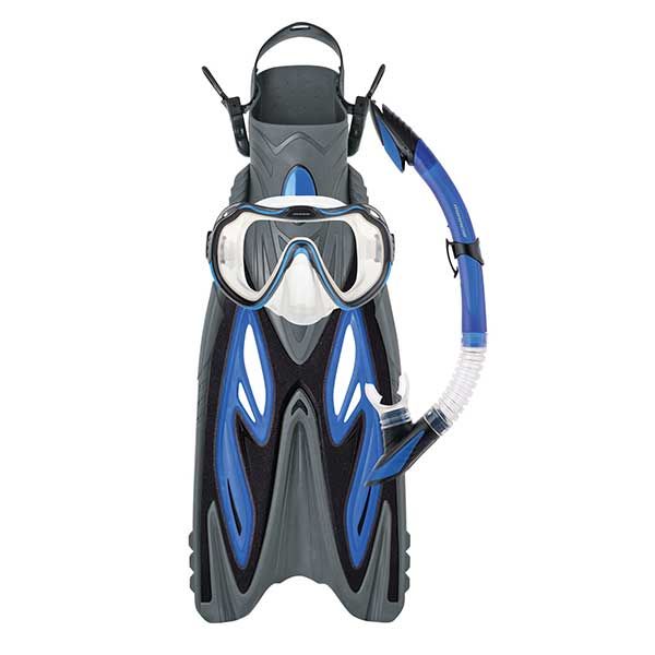 Mirage Diamond Mask Snorkel and Fin Set with Tempered Glass Lens Blue
