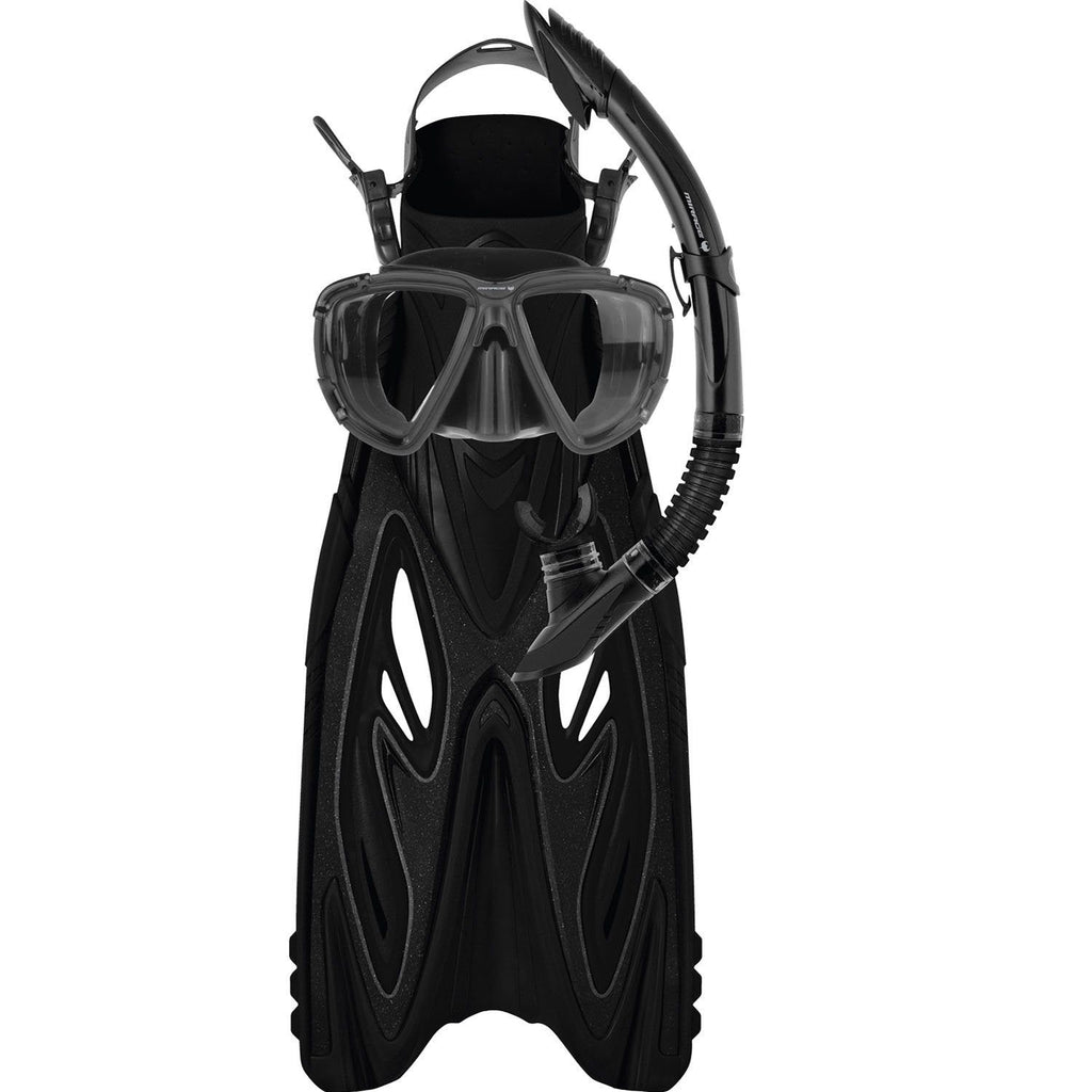Mirage Gold Series Rayzor Fin Snorkel and Mask Set with Tempered Glass Lens Black
