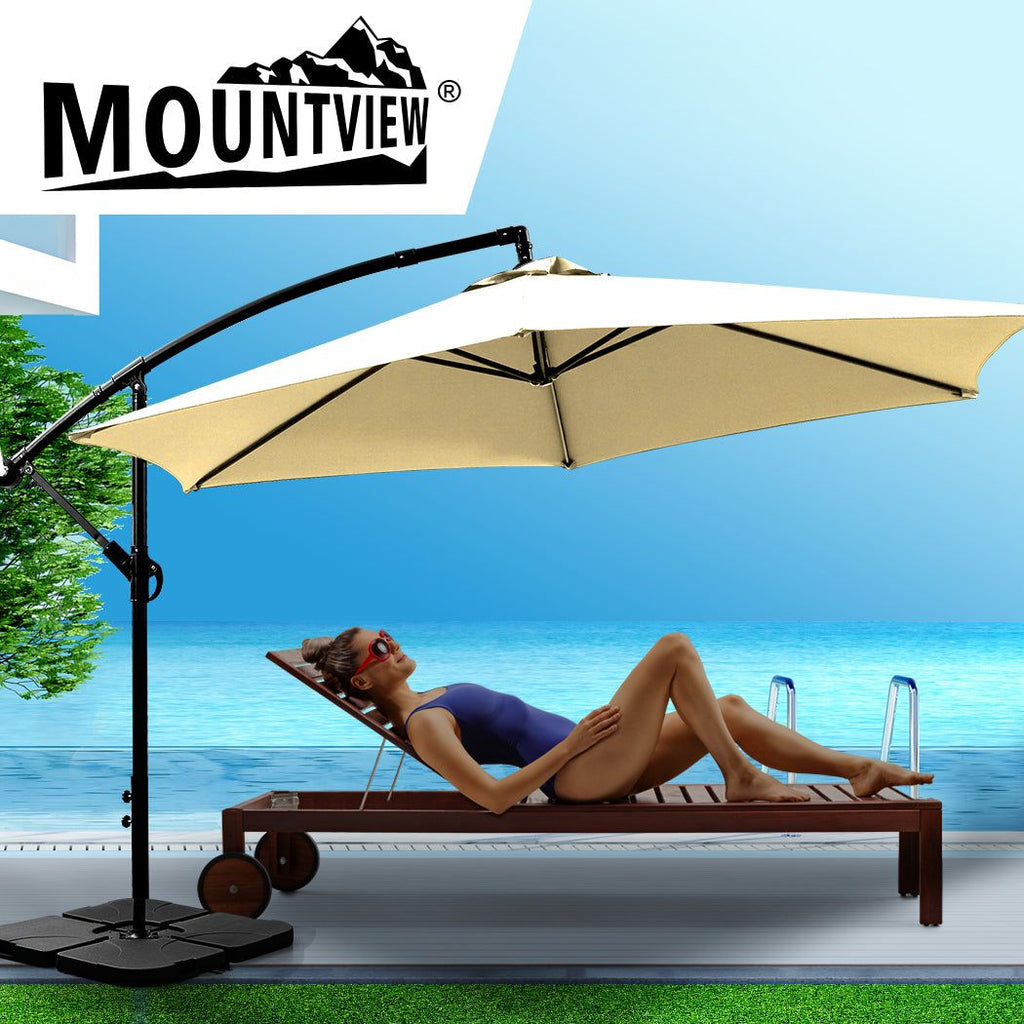 Mountview 3m Outdoor Umbrella Cantilever Umbrellas Base Stand Garden Patio Beach