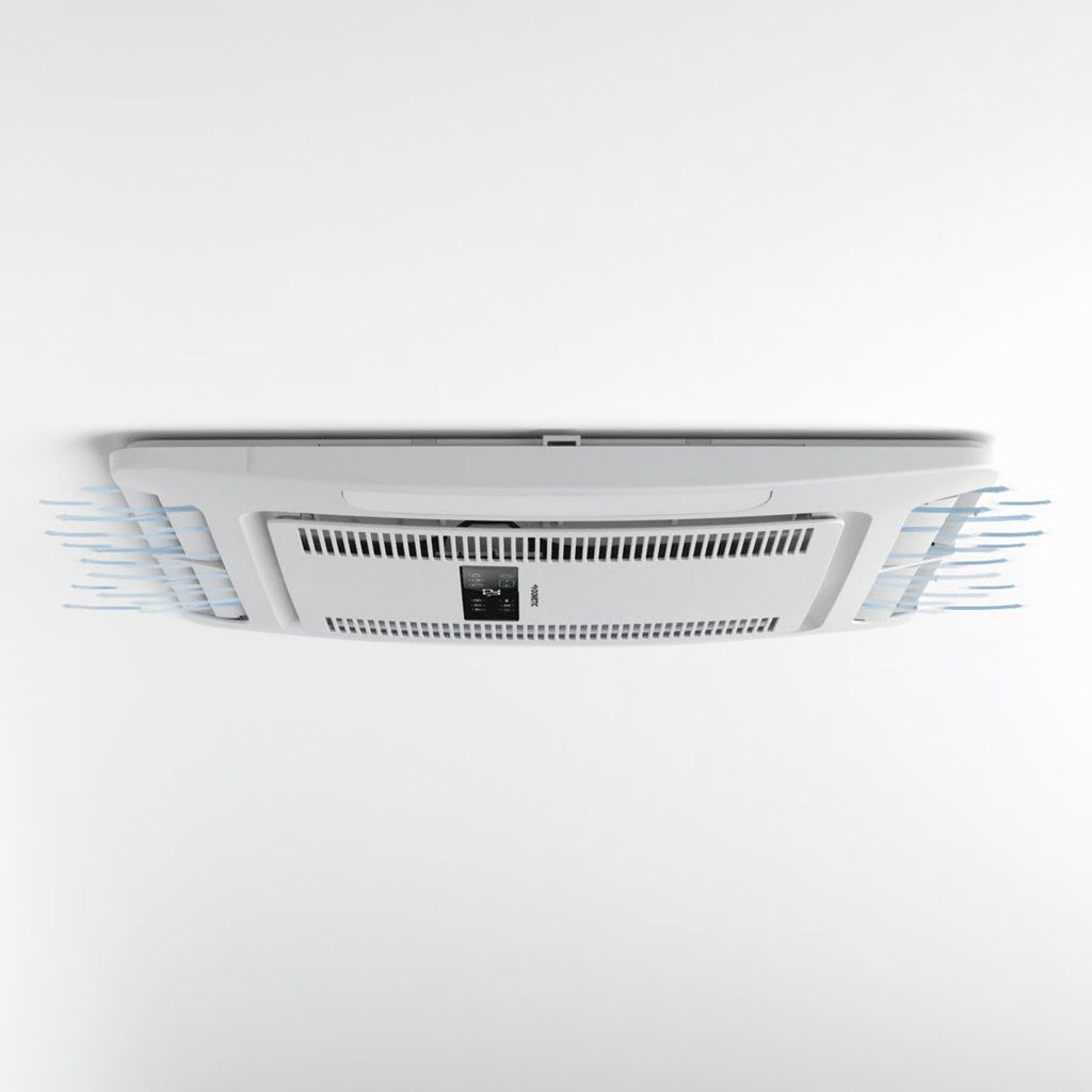 This elegant, super-flat air distribution unit blends in nicely with the interior of modern RVs. It quietly and efficiently moves the air in two directions, front and back. Simply use the flush-mounted touch control display to set the desired temperature and blower speed – and enjoy unforgettable moments in your home away from home. The integrated LEDs radiate a warm and soft ambient light.