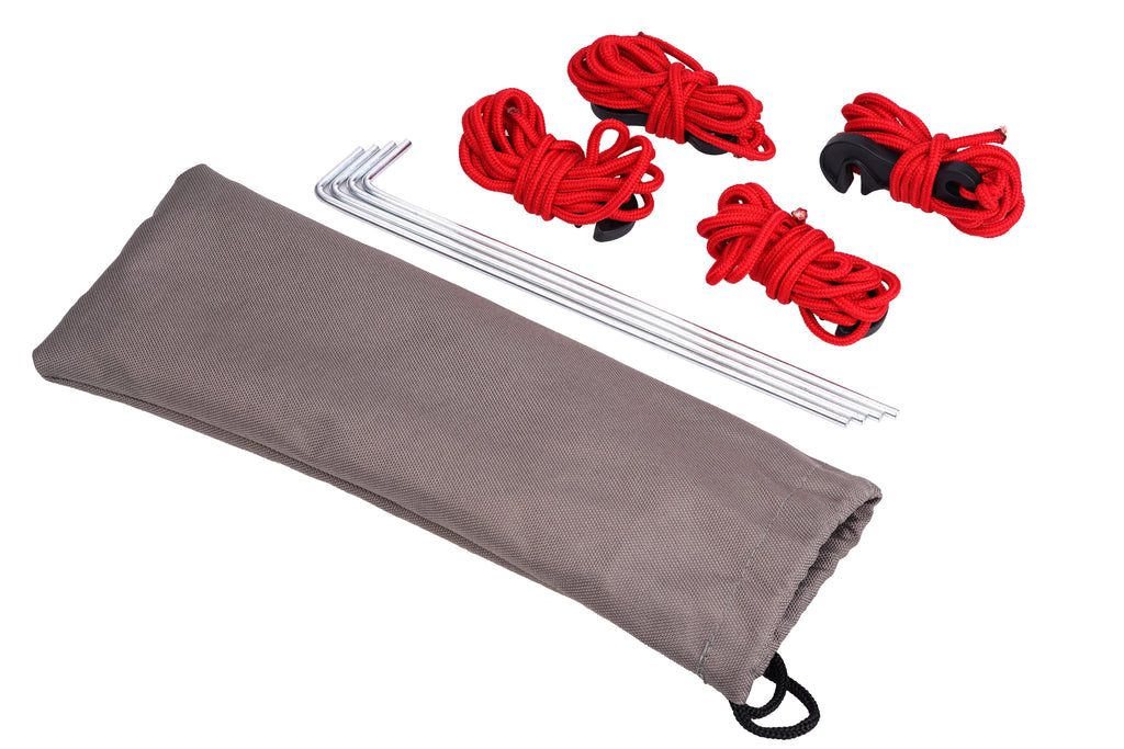 A: Yes. The included guy ropes and heavy-duty pegs provide strong hold in most weather conditions common during caravan travel.