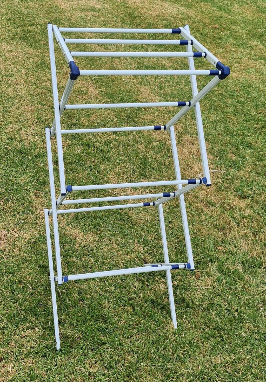 Stylish Design: With its white body and blue ends, this airer adds a touch of style to your laundry area. It's not only functional but also visually appealing, complementing your decor effortlessly.