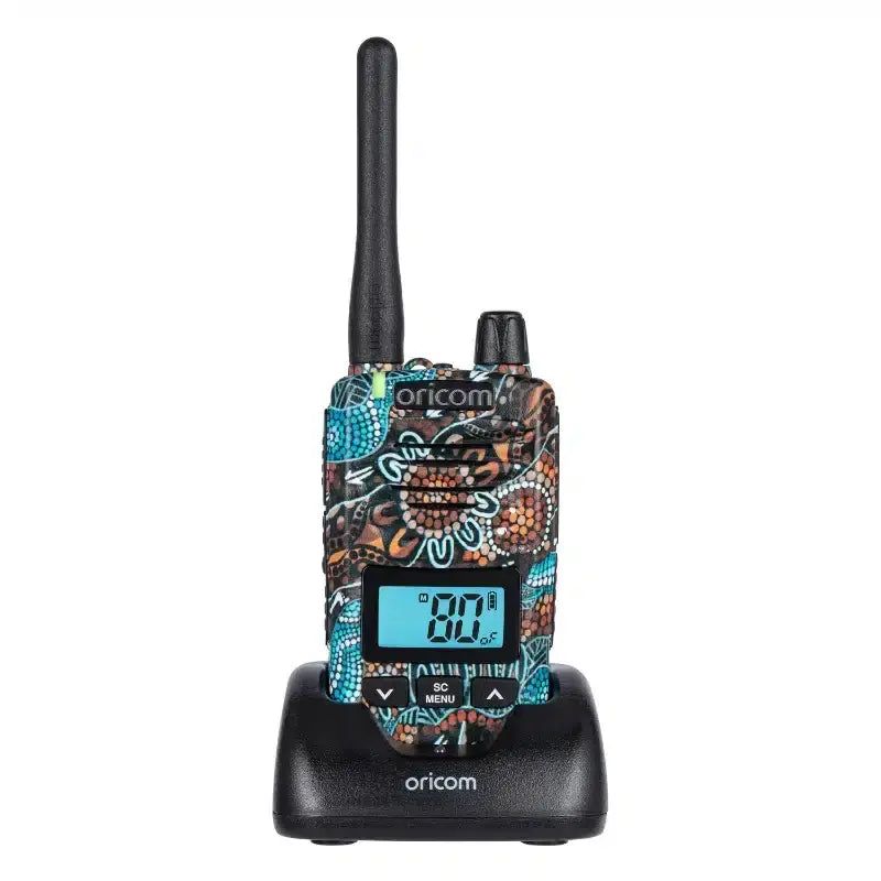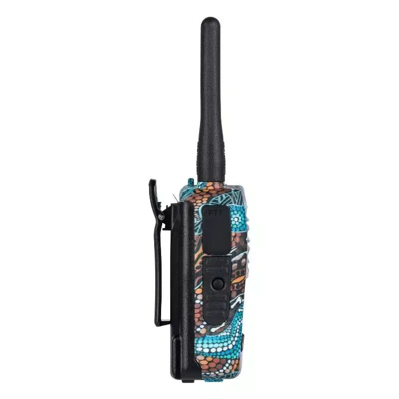 The ORICOM DTX600WA Walkabout UHF CB Radio combines top-tier functionality with cultural significance, featuring exclusive artwork by Aboriginal artist Daniel Evans. Built to handle Australia’s toughest conditions, this compact, 5-watt handheld radio is IP67-rated, making it waterproof and dustproof for ultimate durability. Ideal for adventurers, off-roaders, and outdoor workers, the DTX600WA ensures reliable communication in any environment. When you purchase this device, you’re also supporting the Walkabout Warriors program, helping to promote Aboriginal art and culture.