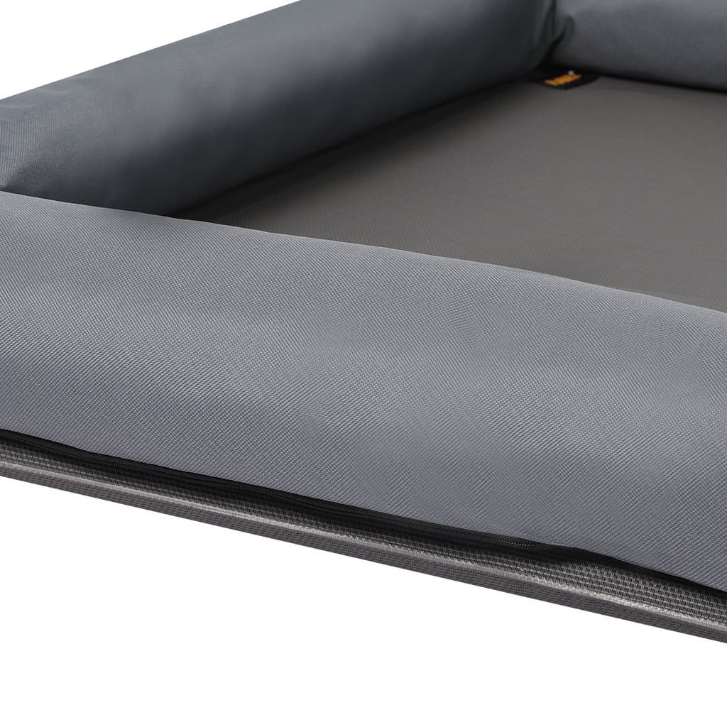 Offer your furry companion a comfortable and elevated resting space with the PaWz Raised Pet Sofa Bolster Bed. Designed to keep pets cool and off the ground this raised pet hammock provides superior ventilation and support making it ideal for both indoor and outdoor use. Its breathable mesh surface ensures airflow while the sturdy steel frame delivers long-lasting durability perfect for large dogs and cats.