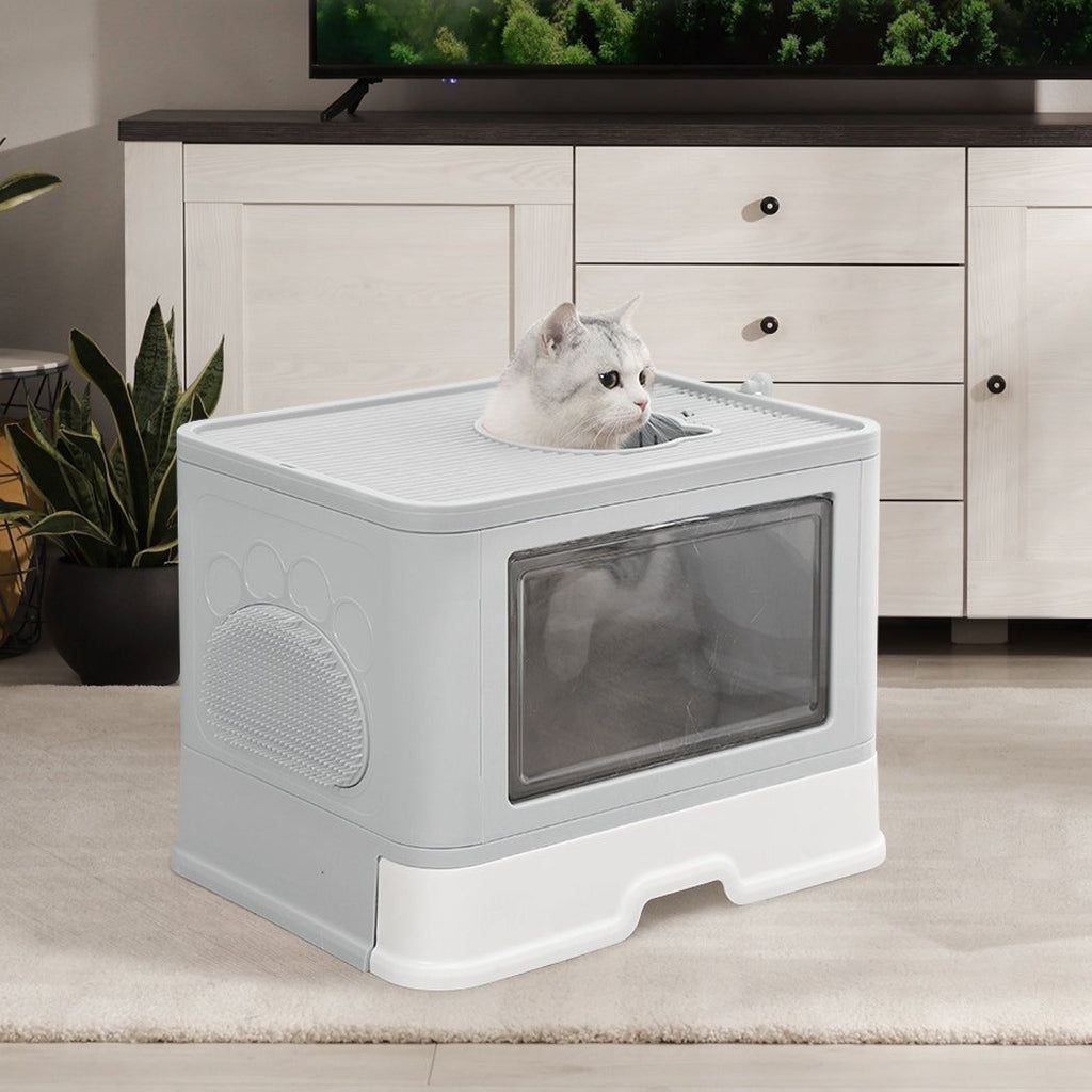 Trained your cat to use a litter box? Superb. That litter still gets kicked everywhere? Sadness. Your new Pawz foldable cat litter box keeps everything inside the box. The perforated roof knocks more litter from their paws just like a well-designed enclosed kitty toilet.