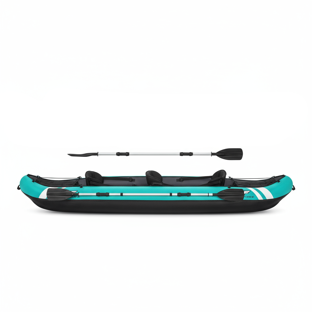 Enjoy the freedom of the water with this Premium Inflatable Double Kayak, designed for both beginners and seasoned paddlers. With a durable nylon-coated hull and heavy-duty PVC floor, this kayak offers excellent stability and resistance to sun, oil, and seawater. Perfect for lakes, rivers, and coastal adventures, it inflates quickly and packs down easily for convenient transport and storage. Whether you’re exploring calm waters or enjoying a weekend getaway, this kayak provides comfort, performance, and reliability in one smart package.