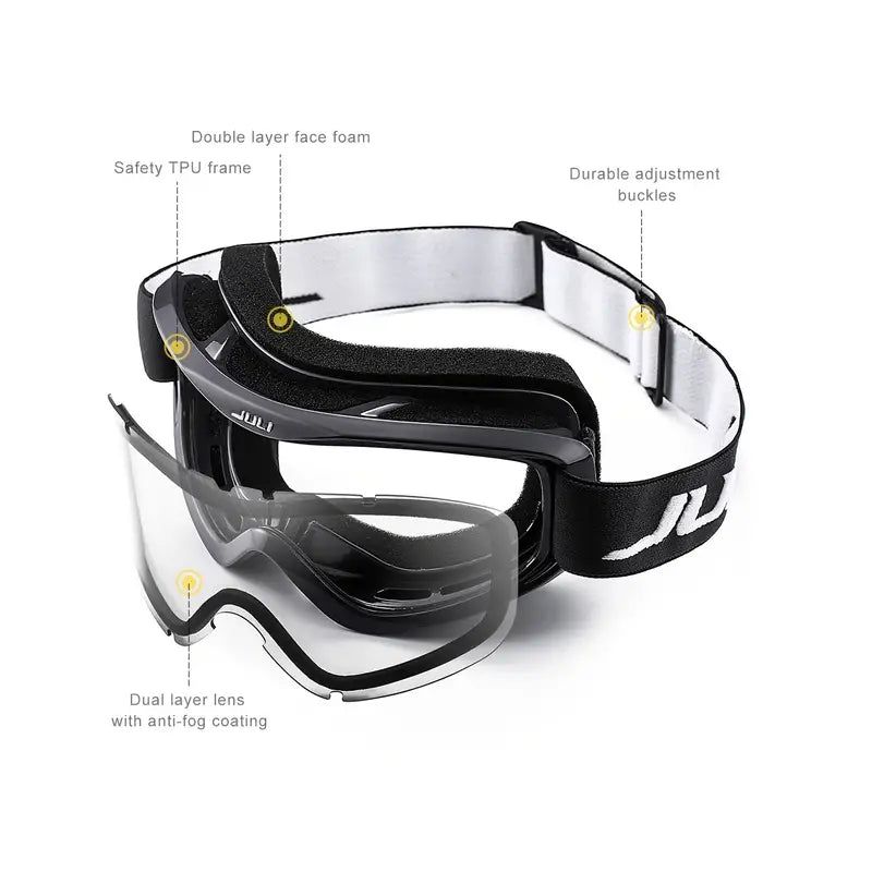 Gear up for your next winter adventure with our premium Ski Goggles. Whether you're shredding down the slopes or cruising through snowy terrain, these goggles provide the ultimate protection and visibility you need. The durable TPU frame and PC lenses ensure long-lasting performance, while the reflection lens technology enhances visibility in various light conditions. With a sleek black design and transparent accents, these goggles not only look stylish but also deliver unmatched functionality. Adjustable straps ensure a comfortable and secure fit, while the versatile design makes them suitable for a range of winter sports activities. Don't let harsh weather conditions hold you back – grab a pair of our Ski Goggles and conquer the winter landscape with confidence.