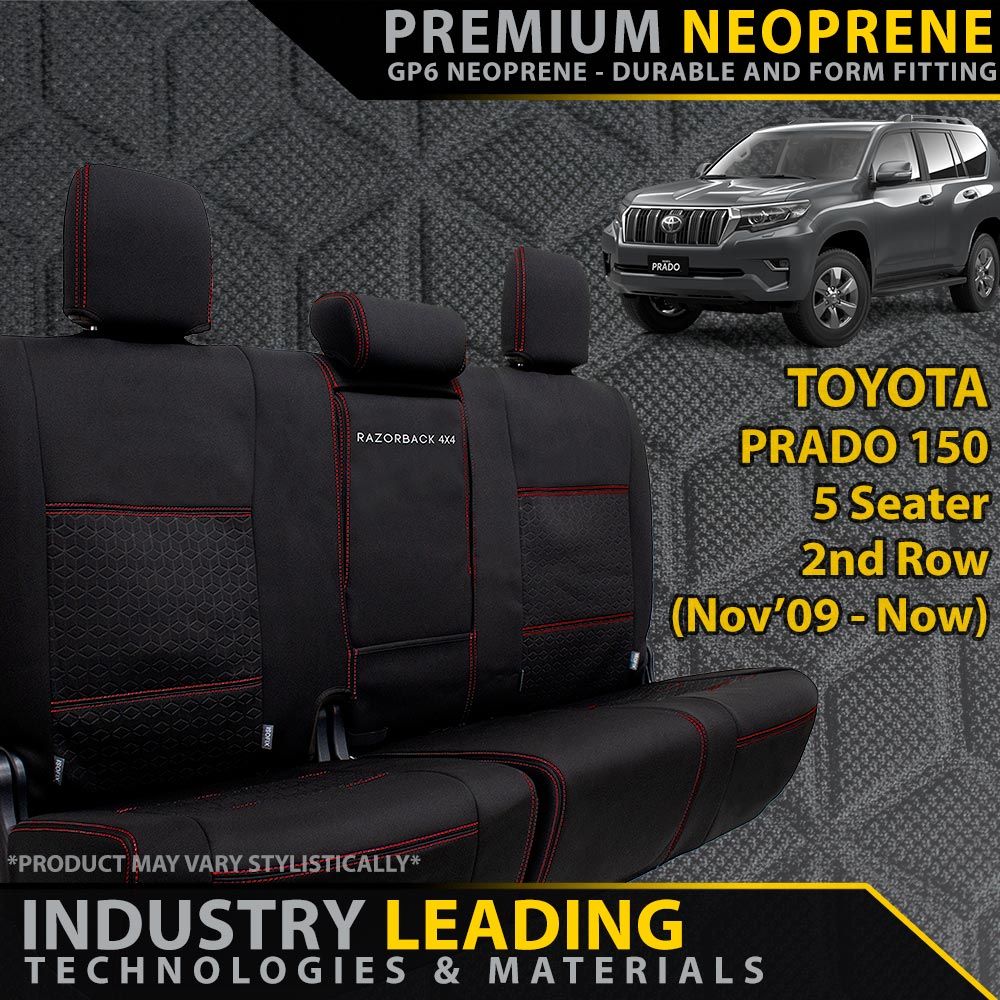 Razorback 4x4 GP6 Premium Neoprene Rear Row Seat Covers suitable for a Toyota Prado 150 5 Seater (Made to Order)