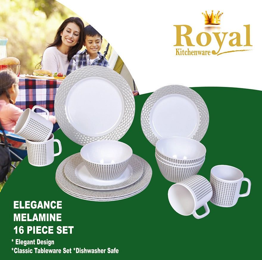Royal Kitchenware 16 Piece Melamine Dinner Set - Elegance