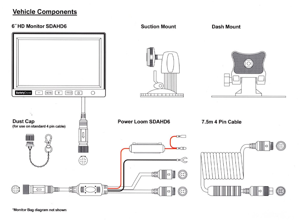 SafetyDave 6" Caravan AHD Rear Vision Kit (92° AHD Eyeball Camera)