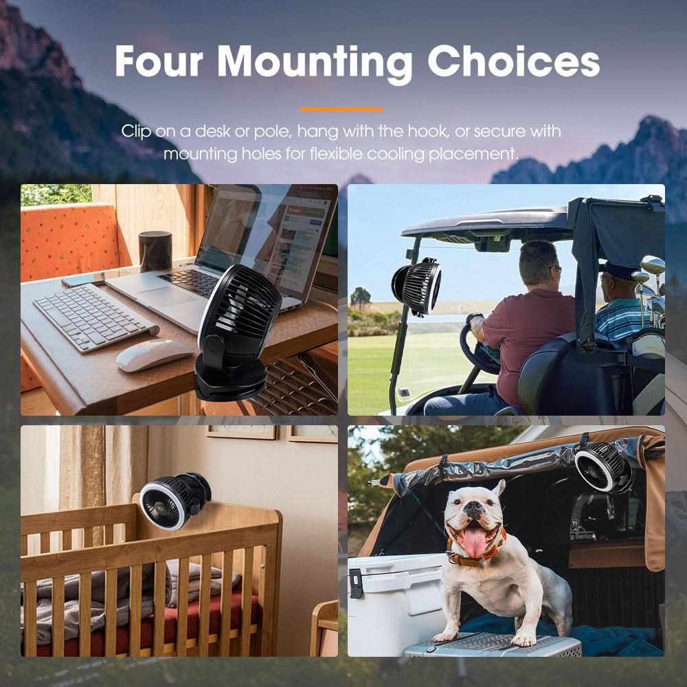 Versatile Mounting Options: Clip to a desk or pole, hang with the hook, or use