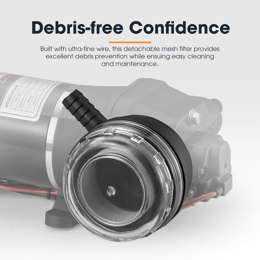 water sources can clog your pump with debris, but our mesh filter solves this.