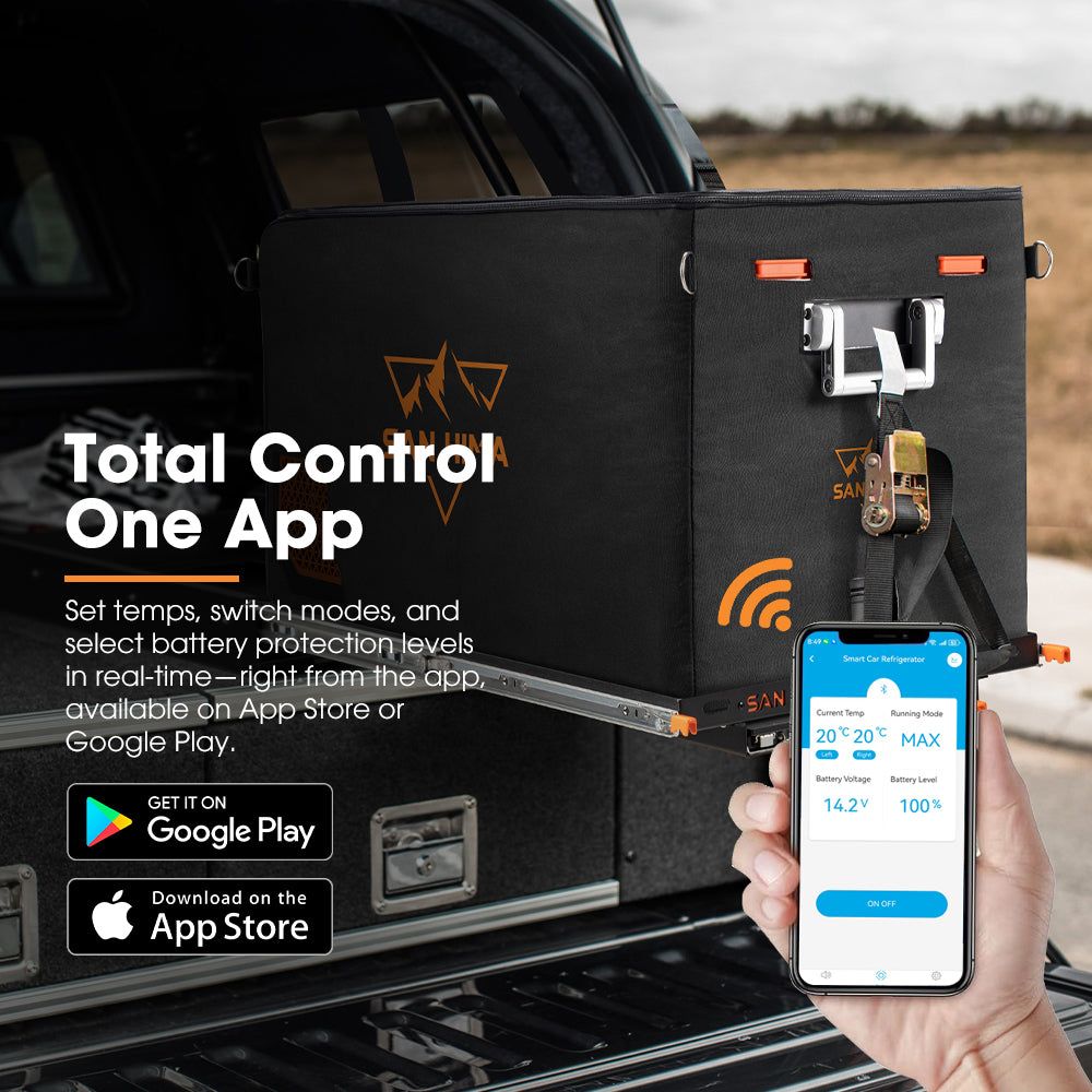 food stays fresh. Plug it into your car’s 12V for power or a 240V outlet when
