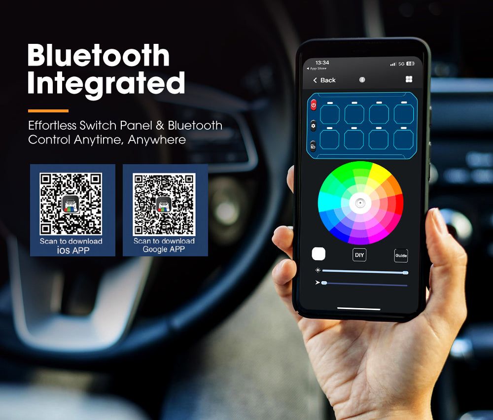 Bluetooth Enabled: Switch panel and Bluetooth App work in sync and the built-