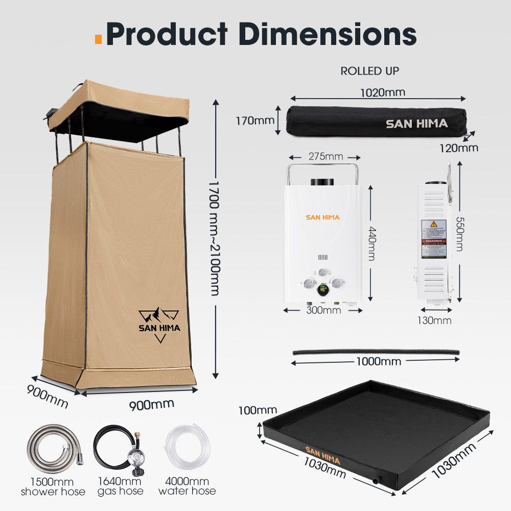 DESCRIPTIONDon’t let the great outdoors come between you and the comfort you deserve. From deep forests to sunny coastlines, our San Hima shower awning is the ideal solution for changing, restroom, and shower needs, ensuring you don’t have to compromise on privacy or convenience.