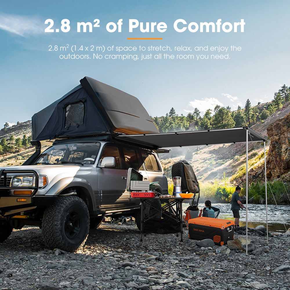 Plenty of Room: With 2.8 m² (1.4 x 2 m) of space, our side awning provides you all the room you need to stretch, relax, and enjoy camp life without feeling cramped.