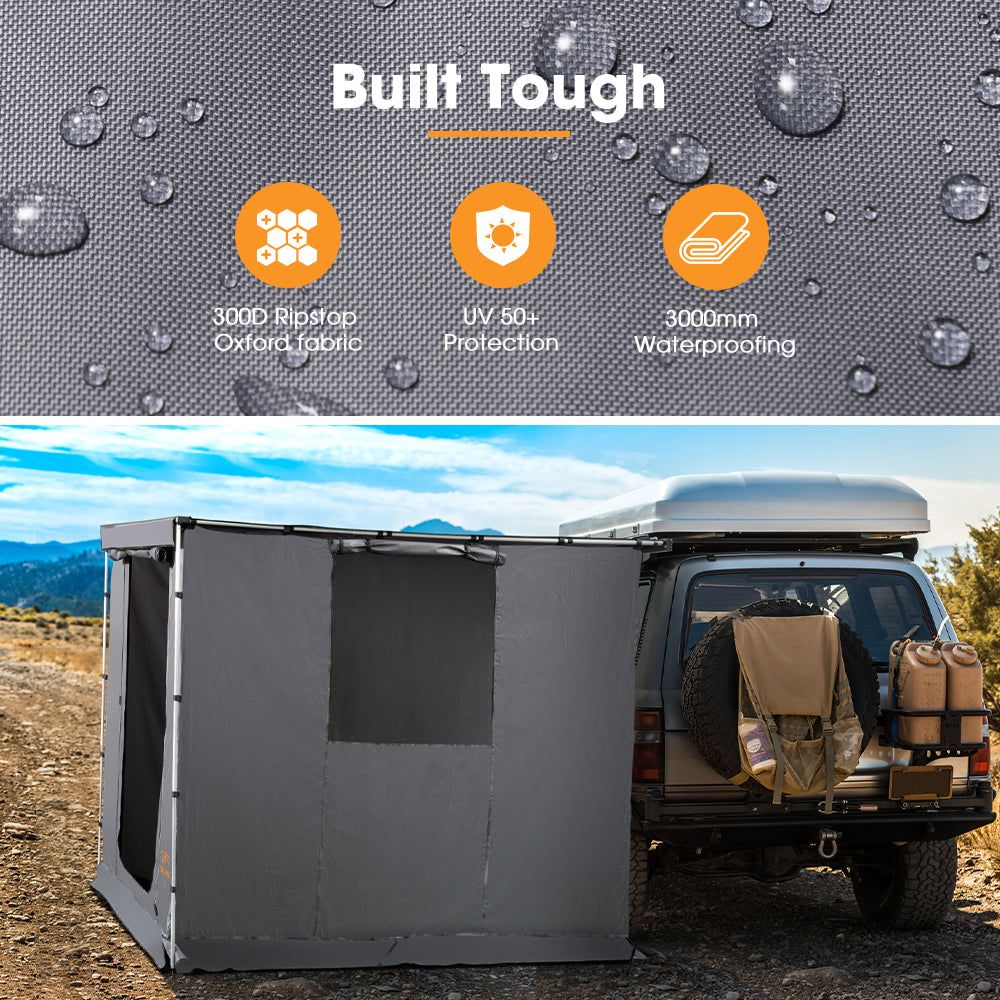Built Tough: Crafted from rugged 300D ripstop Oxford fabric, our annex is mold-resistant, fully waterproof (3,000mm), and shields you with UV50+ protection.