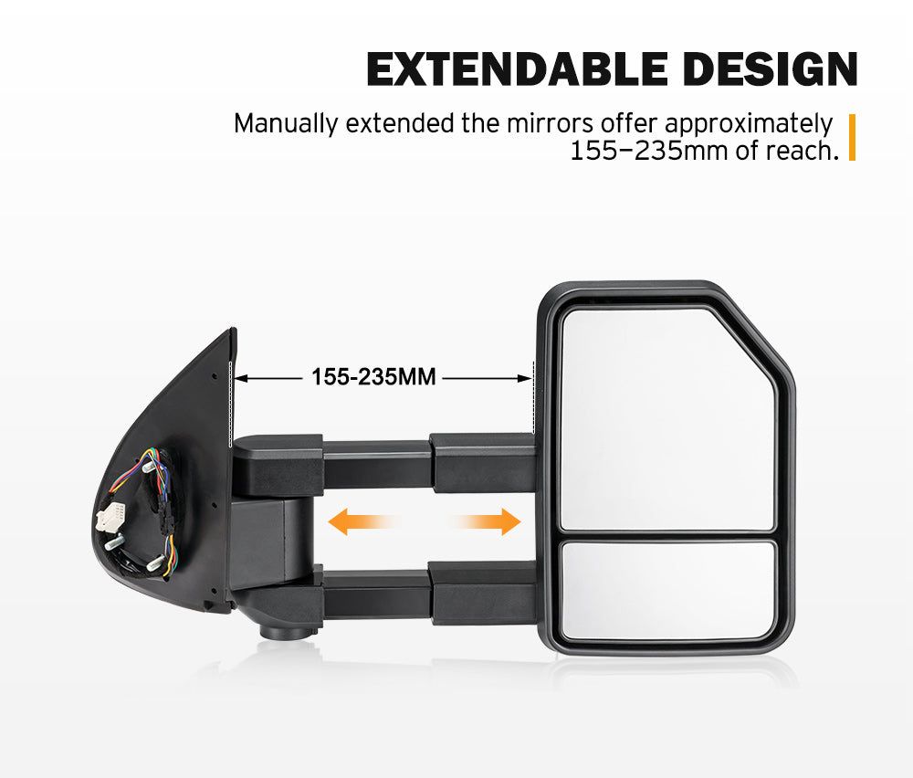 extendable towing mirrors are constructed with a sturdy ABS housing and