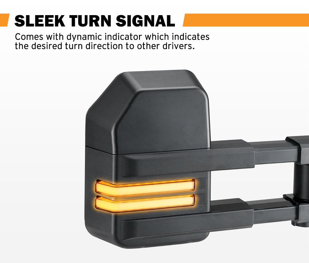 LED Turn Signals: For a safer drive, these towing mirrors come with LED