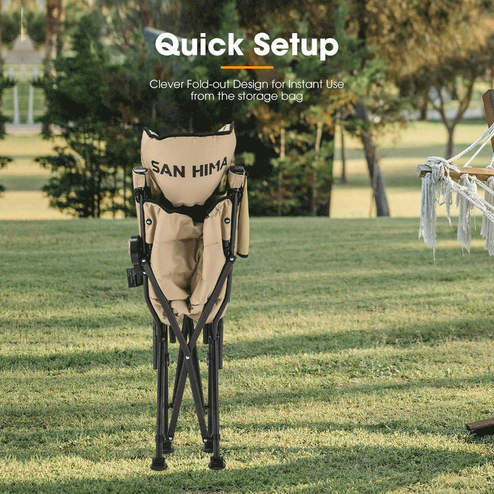 DESCRIPTIONDiscover the pinnacle in portable comfort with the amazing San Hima Folding Camping Chair! Ideal for outdoor and indoor activities, it’s built tough with tear-resistant 600D Oxford fabric and a sturdy steel frame, supporting up to 200kg. Perfect for your favorite campsite, travel, fishing, or home relaxation.