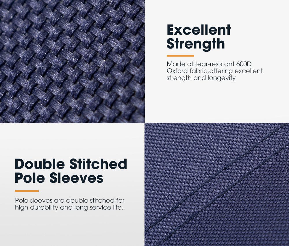 Double Stitched Pole Sleeves: Pole sleeves are double stitched for high