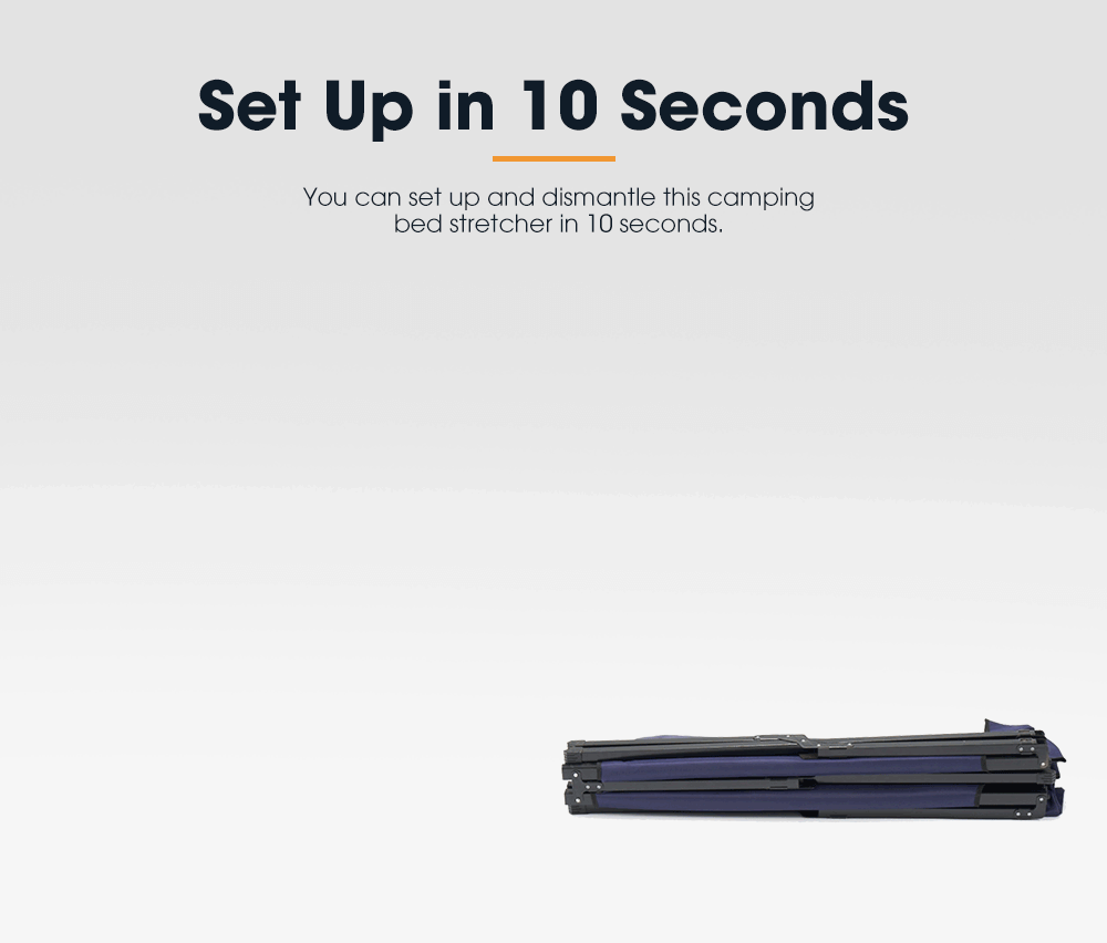 Set up in 10 Seconds: You can set up and dismantle this camping bed stretcher