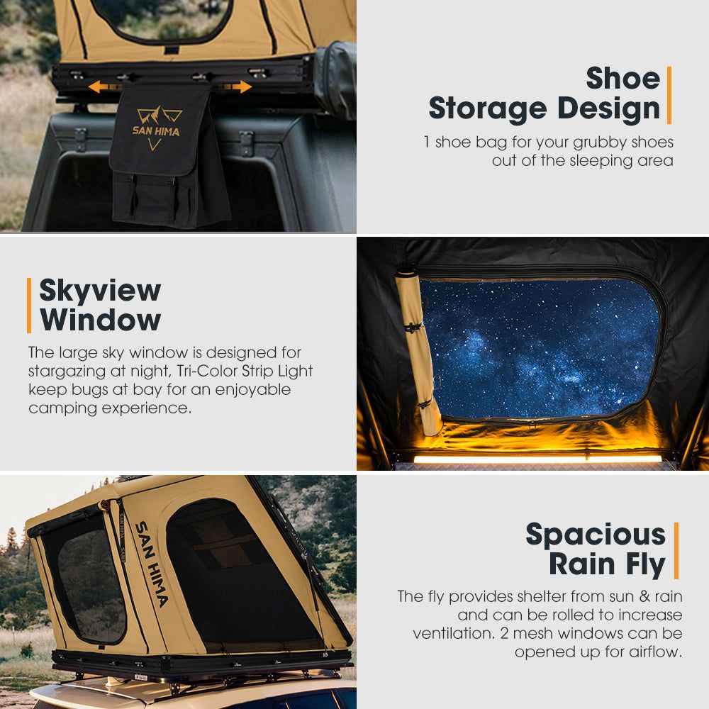 Stay Insulated: Our hard shell rooftop tent features a solid aluminium