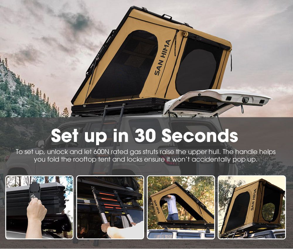 Stay Insulated: Our hard shell rooftop tent features a solid aluminium