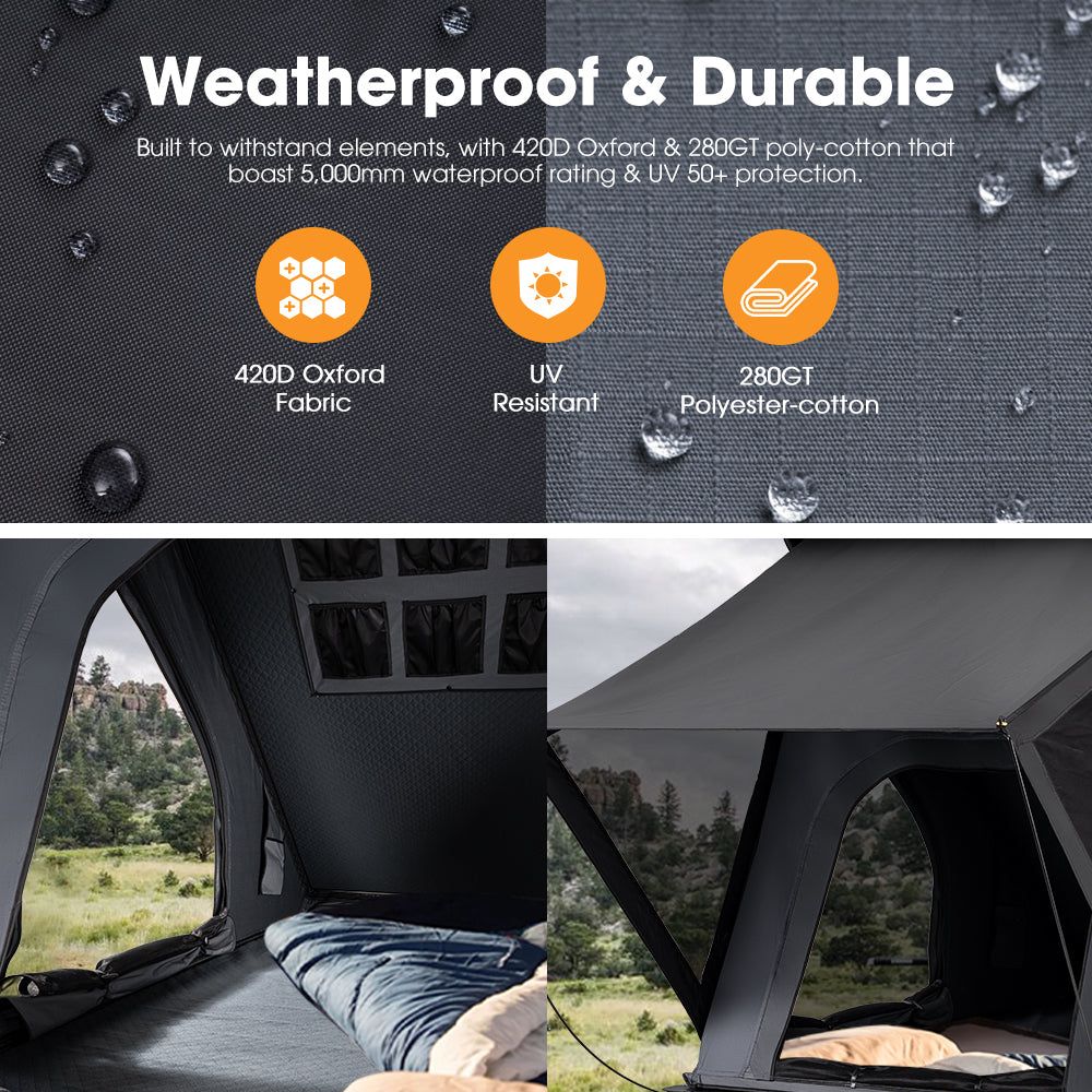 Cotton, our RTT offers an impressive 5,000mm waterproof rating and UV 50+