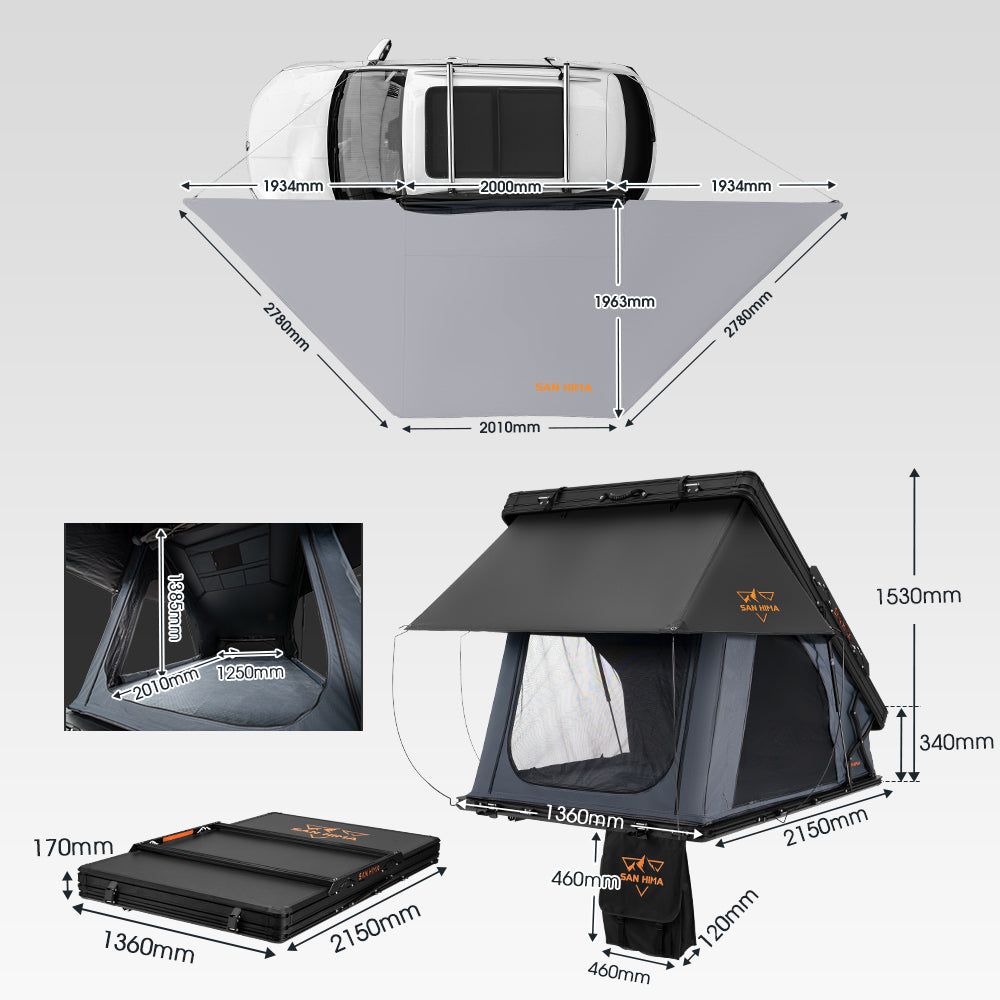 Fuelled by a passion for exploring wild terrains, the San Hima Kalbarri X Rooftop Tent is designed to enhance your comfort on every adventure. Its smart X-arm construction delivers added rear headroom, so no matter where you go, you can be assured that your comfort is always close by. Inside, enjoy a spacious 201x125cm area with a plush 5cm foam mattress and an anti-condensation mat for a great night's sleep. Discover the ultimate in comfort with the San Hima Kalbarri X!