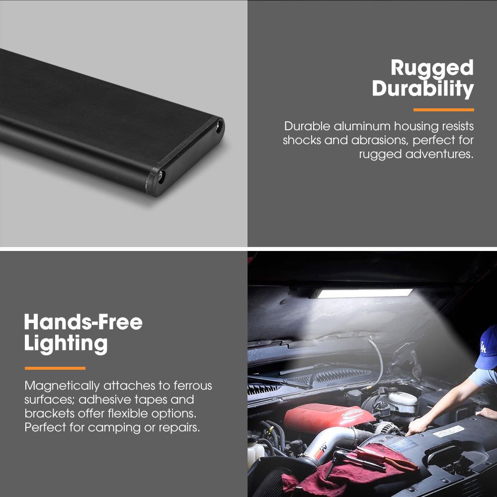 Hands-Free Lighting: Magnetically attaches to ferrous surfaces; adhesive tapes