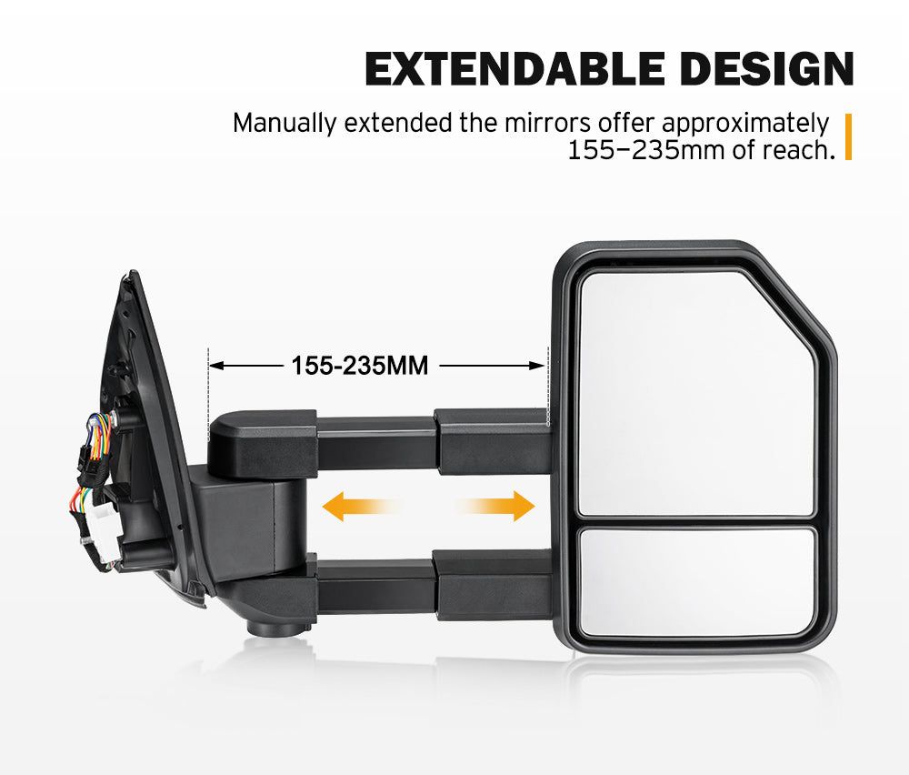Quick & Easy Installation: Our extendable towing mirrors come with plug & play