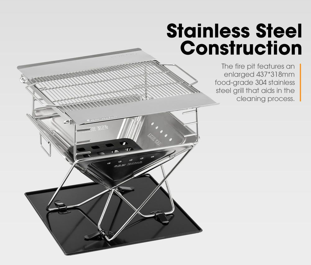 campfire. The enlarged 304 food-grade stainless steel grill provides ample