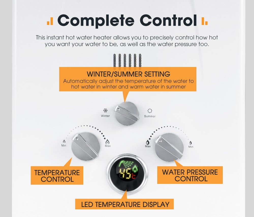 Real-Time Display: Our portable hot water system provides you with a clear &