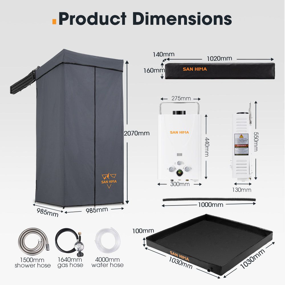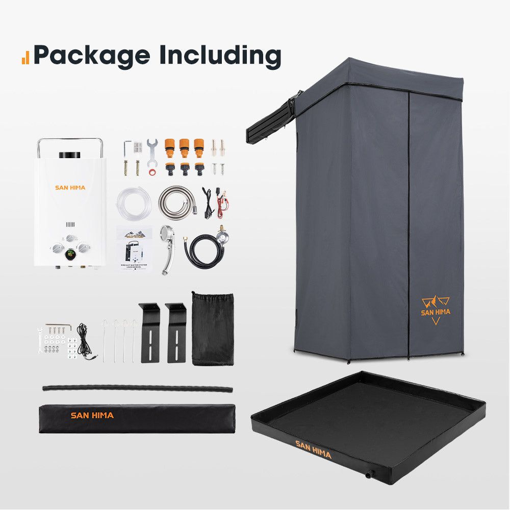 DESCRIPTIONOutdoors, every little detail counts. Traditional shower awnings often do just that—making it harder to access what you need when you need it. That’s where the San Hima shower awning with its 90° swing arm comes in—it gives you an unblocked path, everything’s right where you need it.