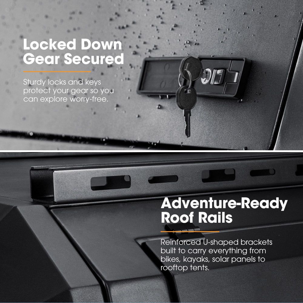Locked Safety: With sturdy locks and keys included, you can confidently leave your gear inside the canopy, knowing it’s protected when you’re off exploring or resting.