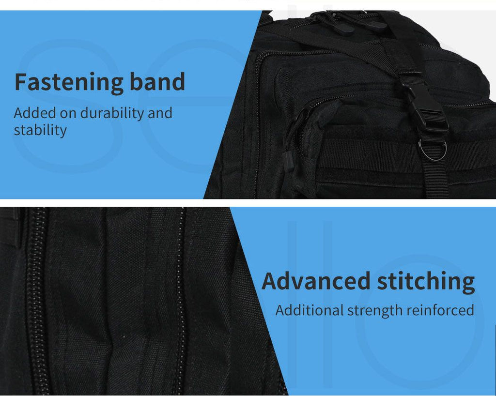 Preparing for an adventure far away! Take our Military Backpack with you. A product designed to support your journey from start till the end. When you embark on a long journey such as camping or hiking there is a bunch of essential stuff you need to carry along. Things including clothes med-kits cookery essentials and many more. You cannot carry all of these in separate bags to solve this issue of space and convenience we have designed a backpack that is very easy to carry and provides ample space inside to store all the essential stuff. Designed to be exceptionally comfortable a special breathable mesh layer is provided within. Provided with an adjustable shoulder strap eases the pain on your shoulder effectively. To make it more convenient a unique chest and side buckle is provided. It lets you choose the comfort level. Provides you total freedom when it comes to adjustments.