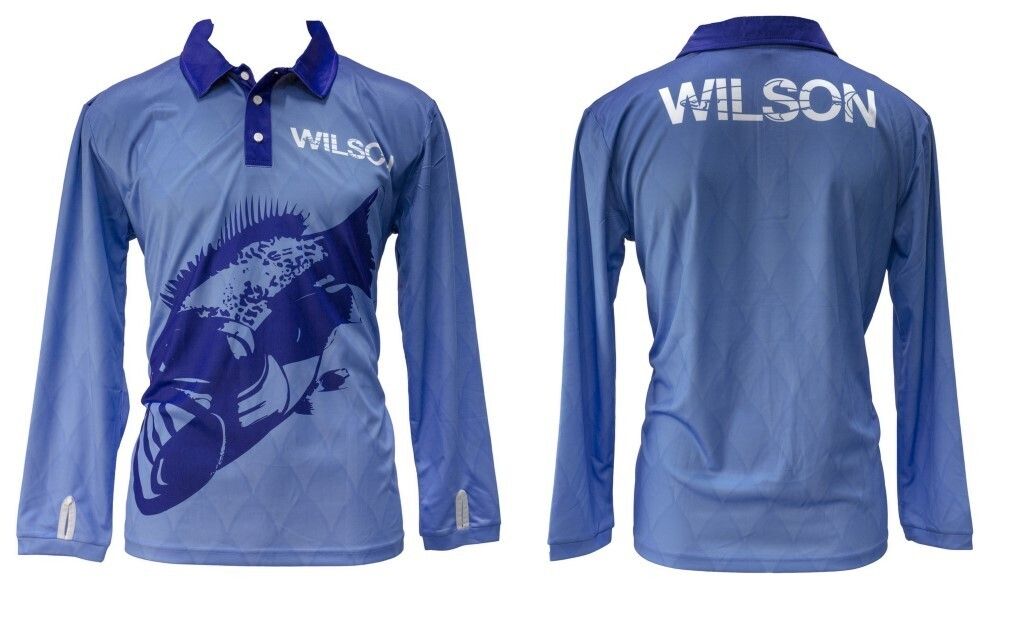 Small Wilson Blue Kingfish Tournament Long Sleeve Fishing Shirt with Collar
