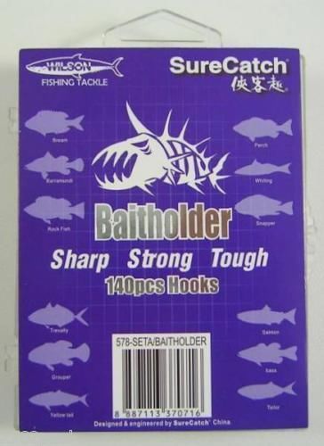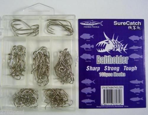 Surecatch 140 Piece Assorted Baitholder Fishing Hook Pack in Tackle Box