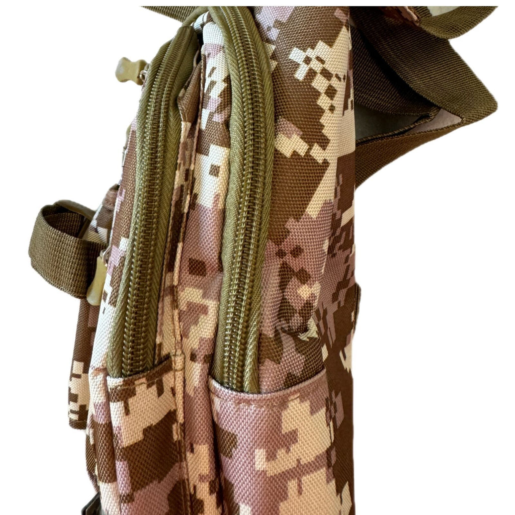 Upgrade your gear with the Tactical Camo Crossbody Bag. Its practical design and stylish appearance make it the ideal companion for outdoor adventures, daily commutes, and everything in between. Stay organized, stay connected, and stay hydrated with this versatile rucksack.