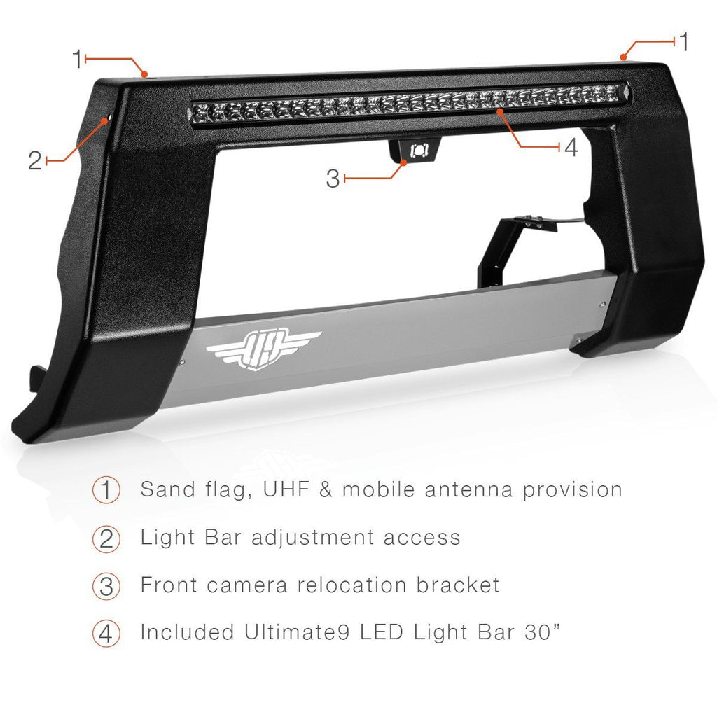 - LED Lighting: Includes an Ultimate9 LED Light Bar 30"