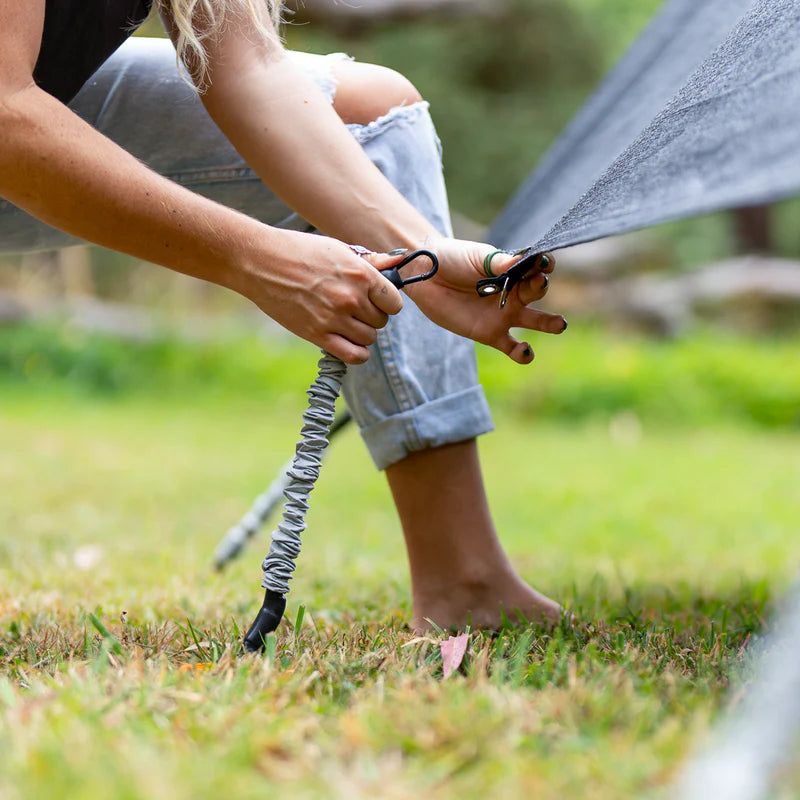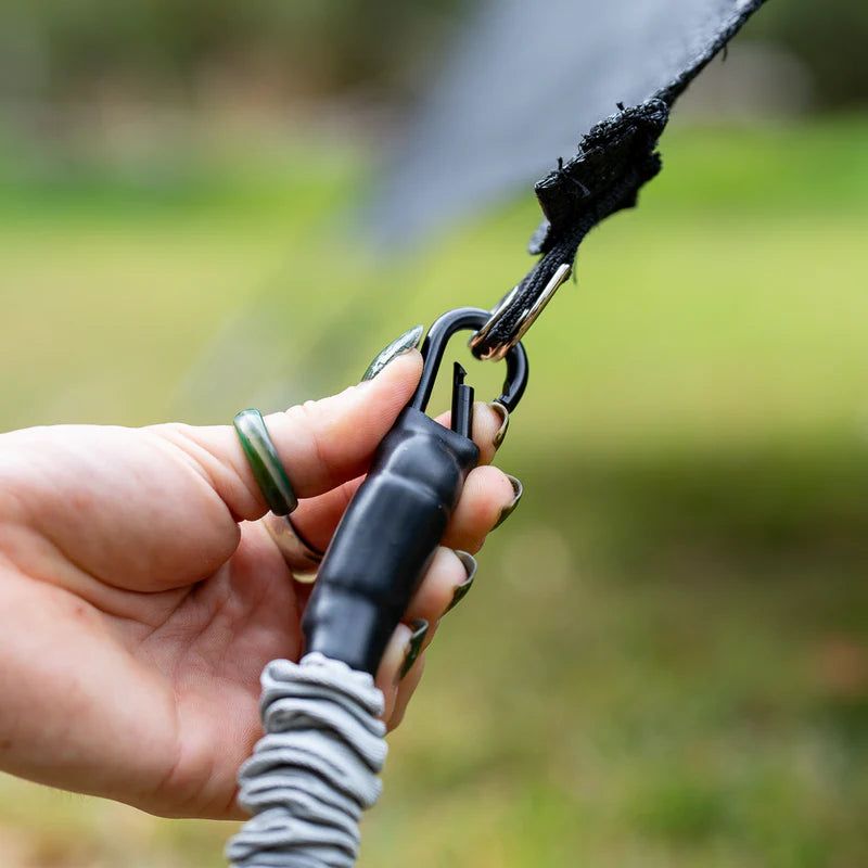 Introducing our Privacy Screen Springs – the ultimate solution for enhancing the durability and versatility of your privacy screens. Engineered with precision and resilience in mind, these springs are specially designed to absorb large gusts of wind, ensuring that your privacy screen stays firmly in place while safeguarding the integrity of its eyelets. The Screen Spring has an aluminium anodised carabiner at each end of the 18cm un-stretched bungee for different configurations of use, depending on your specific environment and requirements.