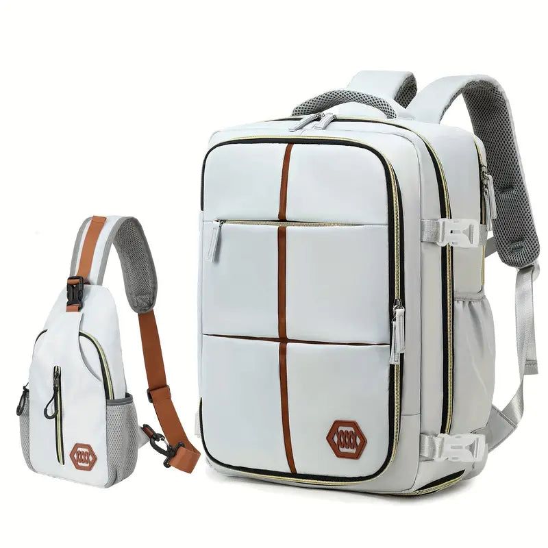 Travel smart and stylish with our multifunctional backpack designed for modern explorers. Featuring a sleek silver gray design and a bonus chest bag, this backpack is your ultimate travel companion.