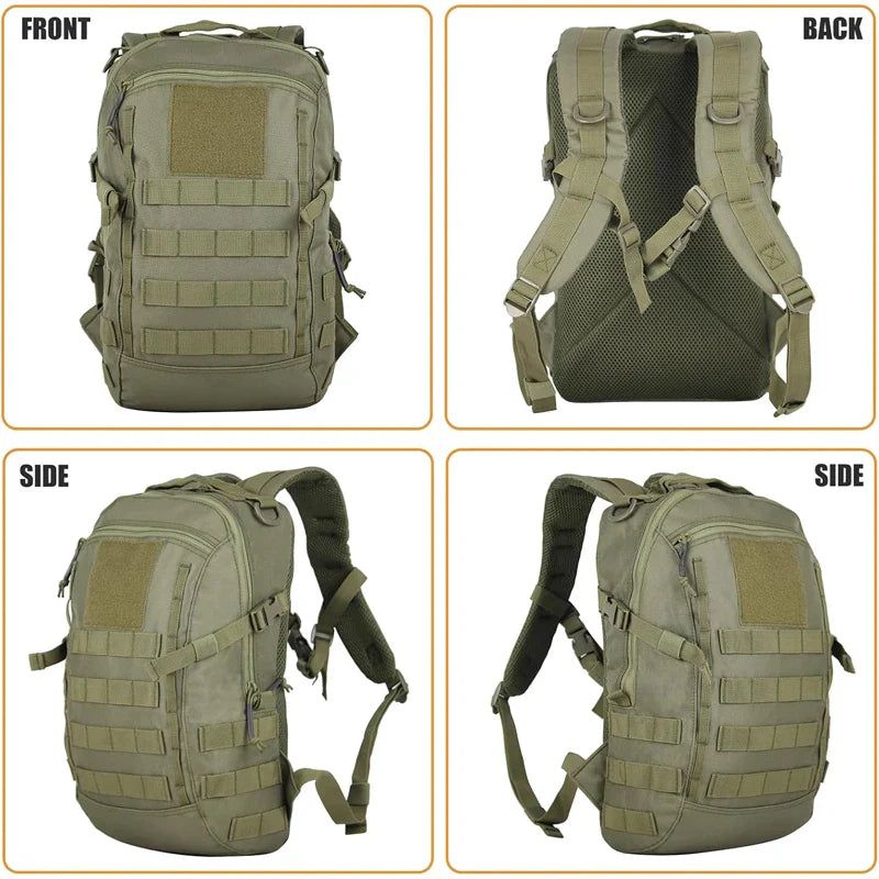Despite its compact size, it boasts multiple storage compartments including a padded space for up to a 14.1" laptop or hydration pack, as well as smaller zippered pockets for your essentials. Padded, ventilated shoulder straps and a mesh back ensure a comfortable carry even during long hauls. Whether you're exploring the great outdoors or commuting through the city, this tactical backpack is your reliable companion.